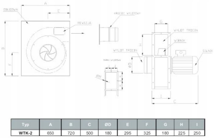 Wentylator do odciągu trocin Tywent WTK-2P 3500m3 – opis produktu. Szczegóły w źródle.