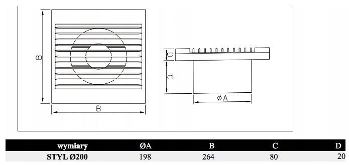 Wentylator ścienny osiowy STYL fi 200 - 400m3/h – opis produktu. Szczegóły w źródle.